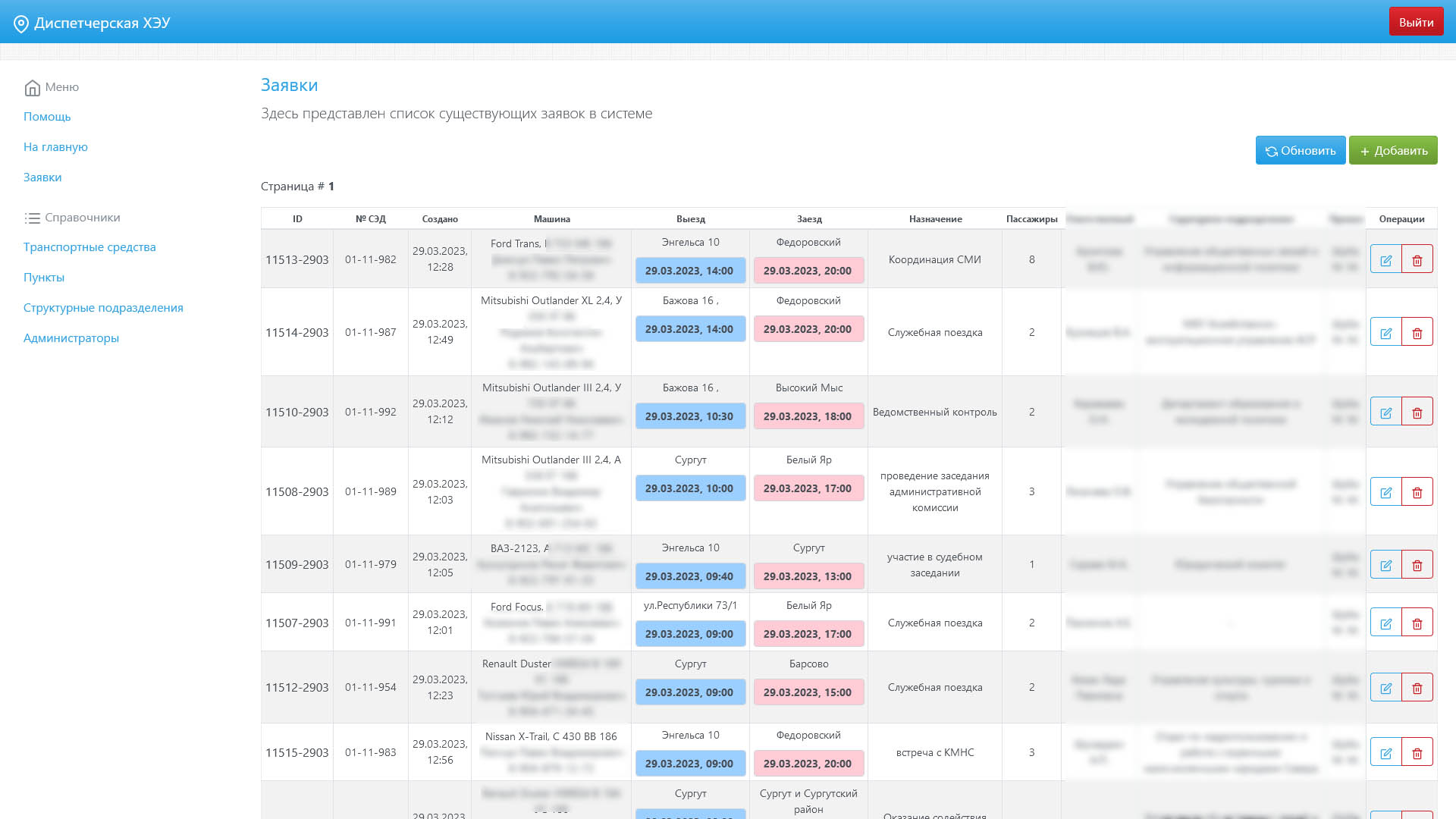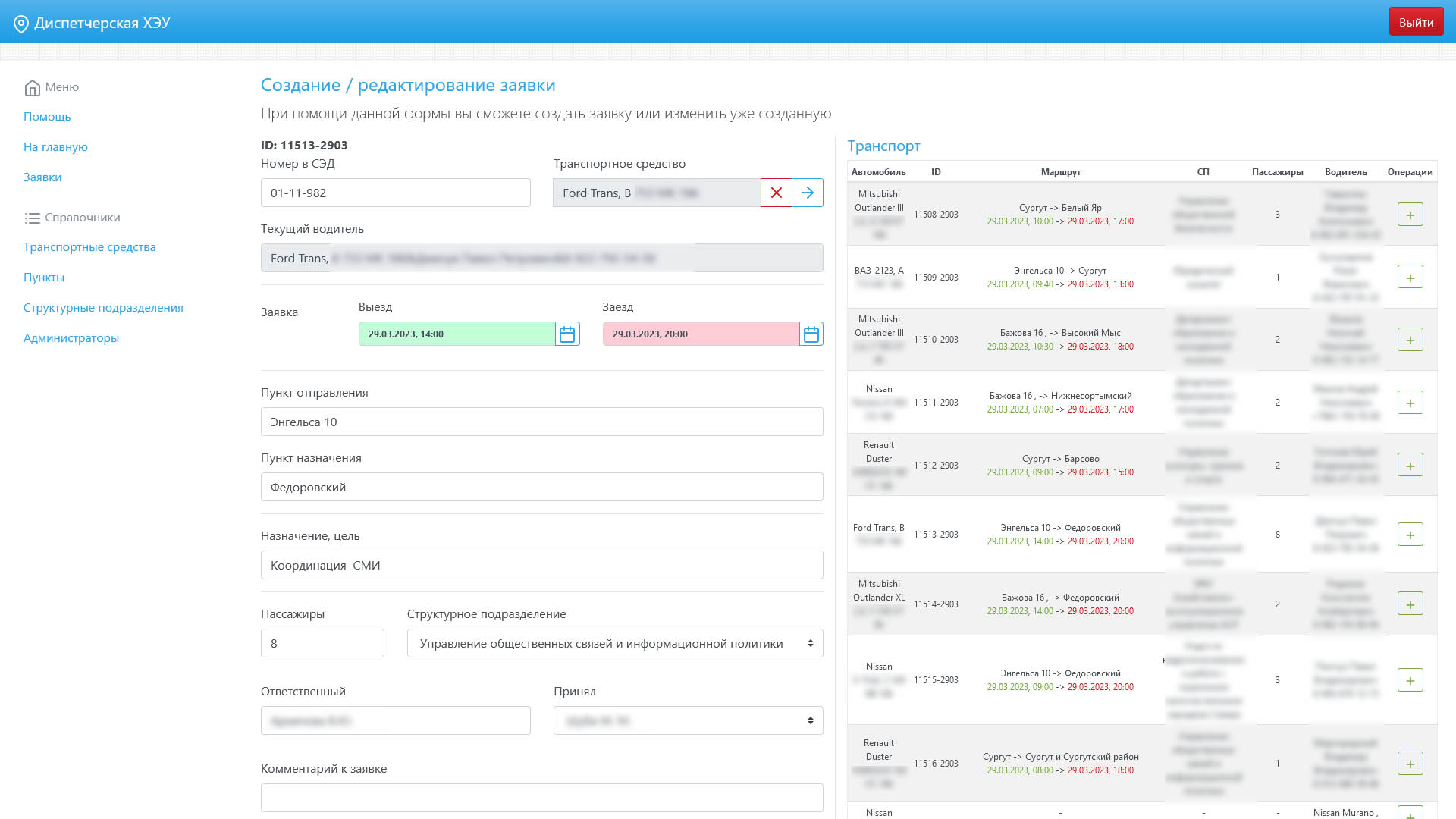 Система для заявок на служебный транспорт для сотрудников с адаптированной версией для мобильных клиентов.