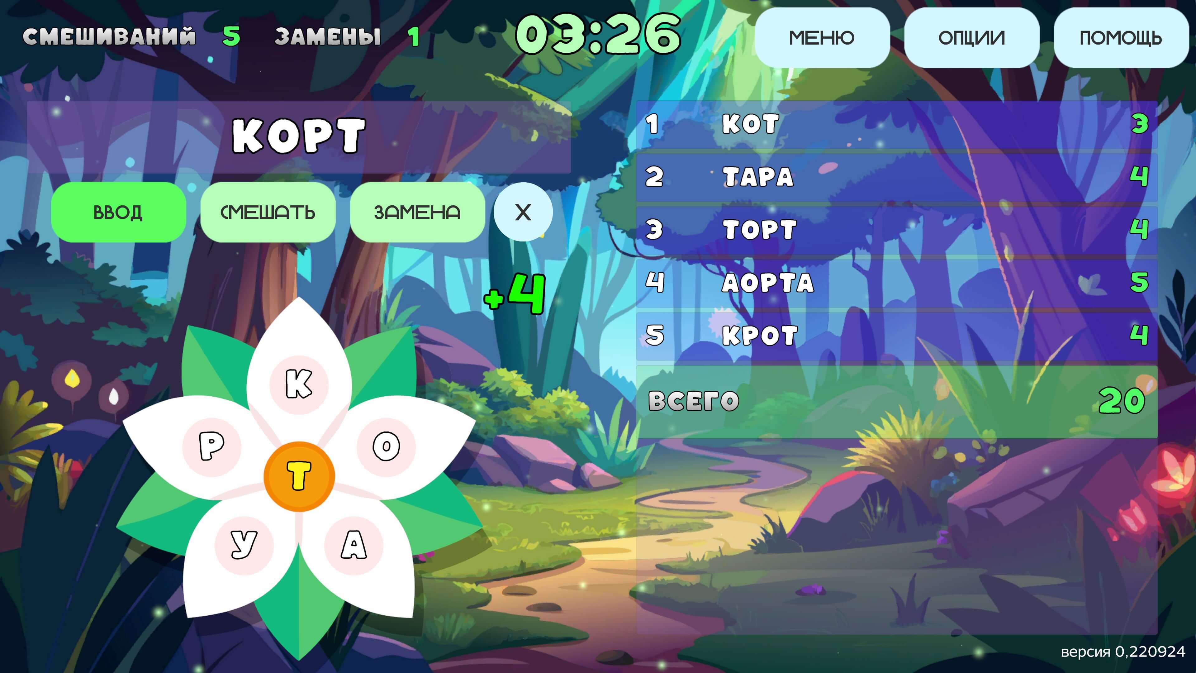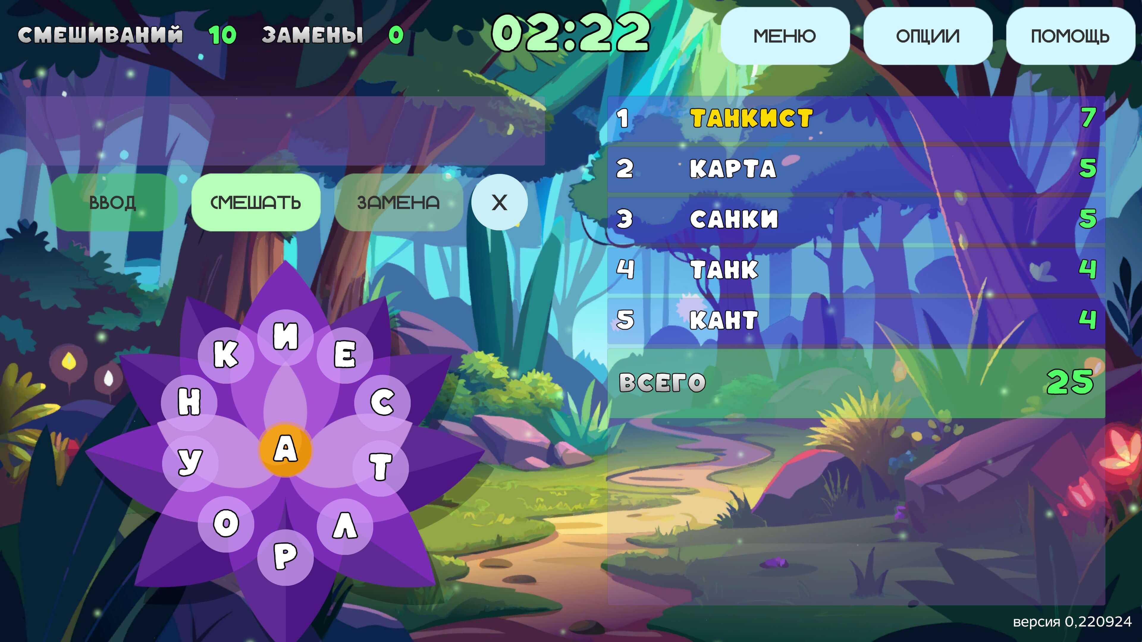 Казуальная игра на составление слов, использованы нейросети как для составления словаря, так и создания графических элементов.