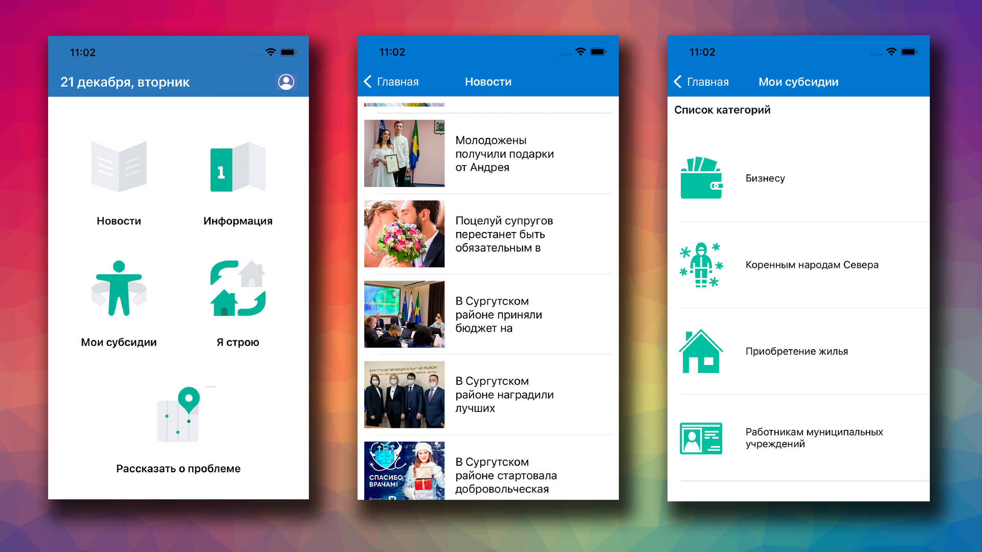 Мобильное приложение для граждан Сургутского района с информацией о субсидиях, новостями и возможностью сообщить о проблеме.