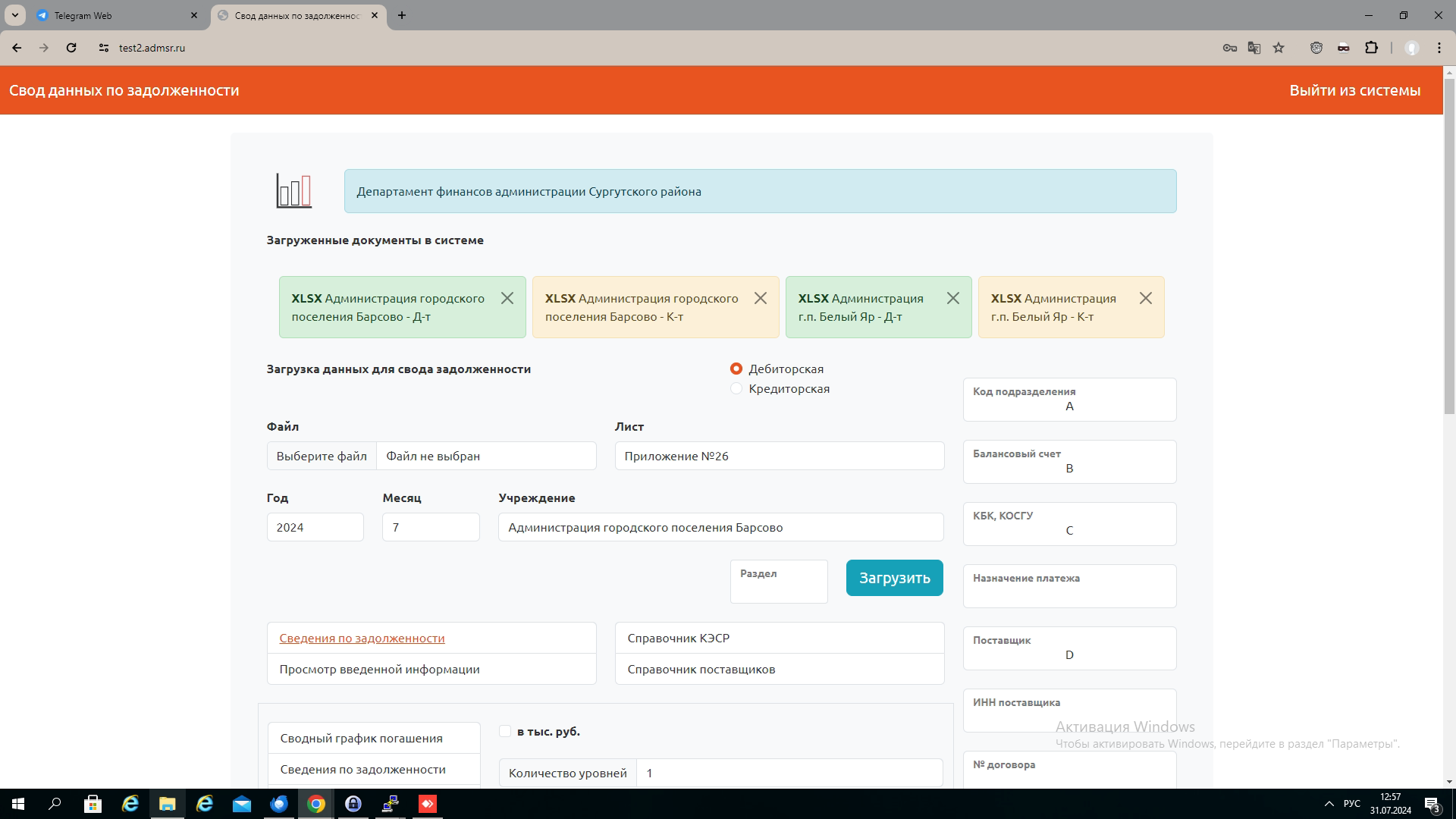 Свод данных по задолженности