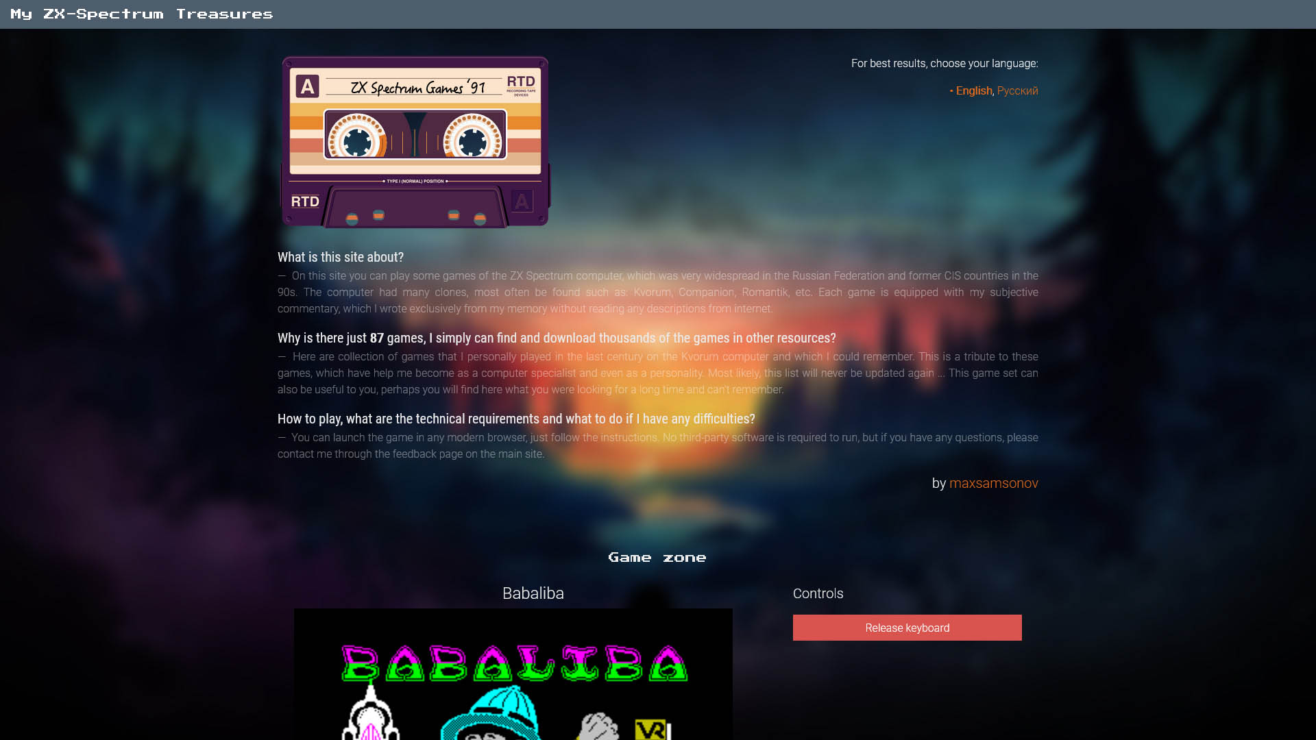 Библиотека некоторых игр из детства с возможностью играть в браузере. Разработан как эксперимент с системой CraftCMS.